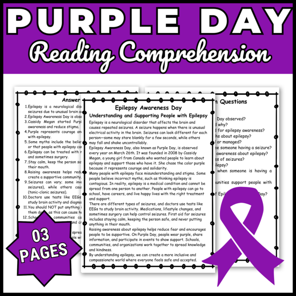 Epilepsy Awareness Day Activities Bundle | Purple Ribbon Coloring Pages & Crafts
